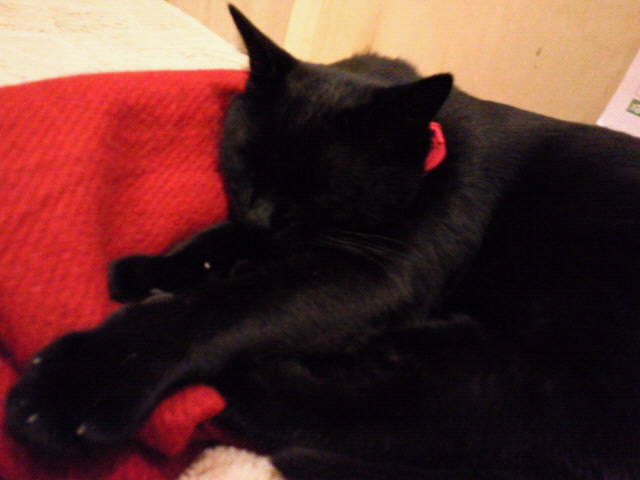 愛想の良い黒白の猫が出迎えてくれ、座った席では愛想の悪い黒猫が居眠りしていた。コーヒーを煎れるマスターの肩の上にはキジ寅猫がのっかっていて可愛かった。